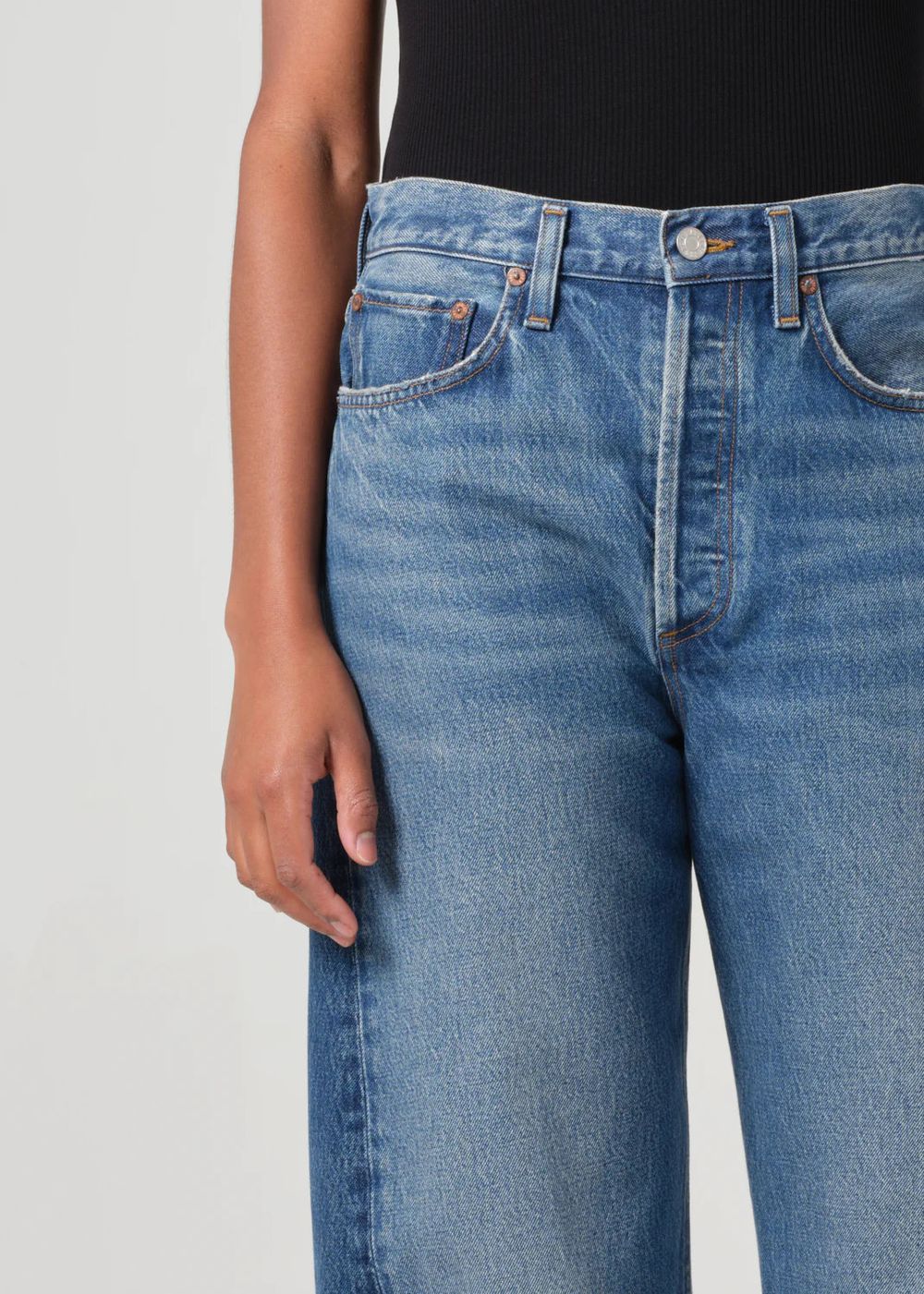 This fit is true to size, offering all-day wearability while maintaining a stylish edge. The Agolde Luna jeans are perfect for those looking to enhance their denim collection with a modern twist.