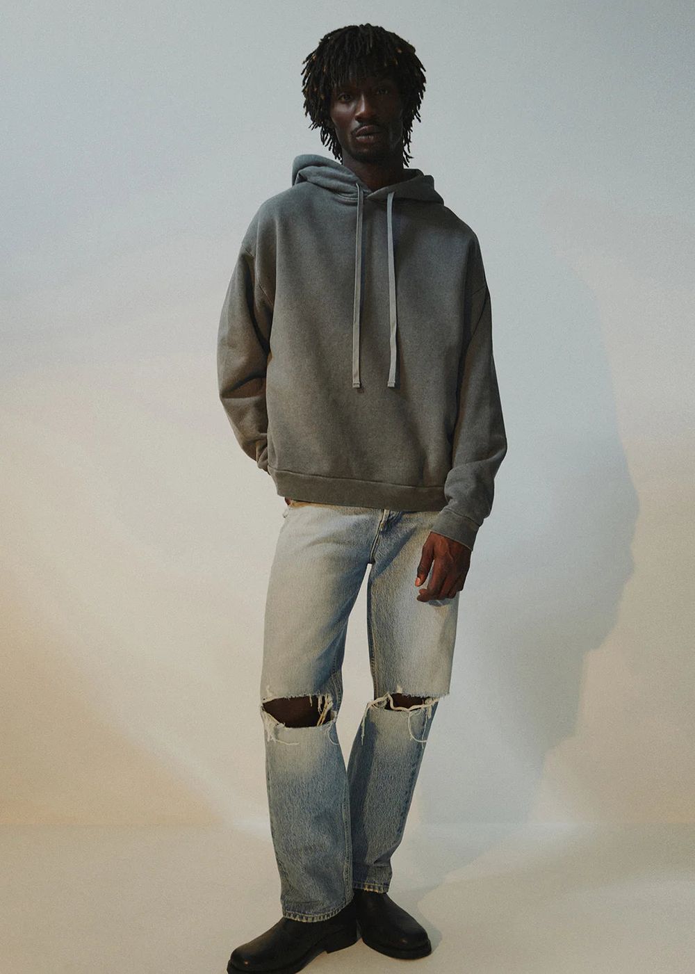 - Relaxed fit at the waist