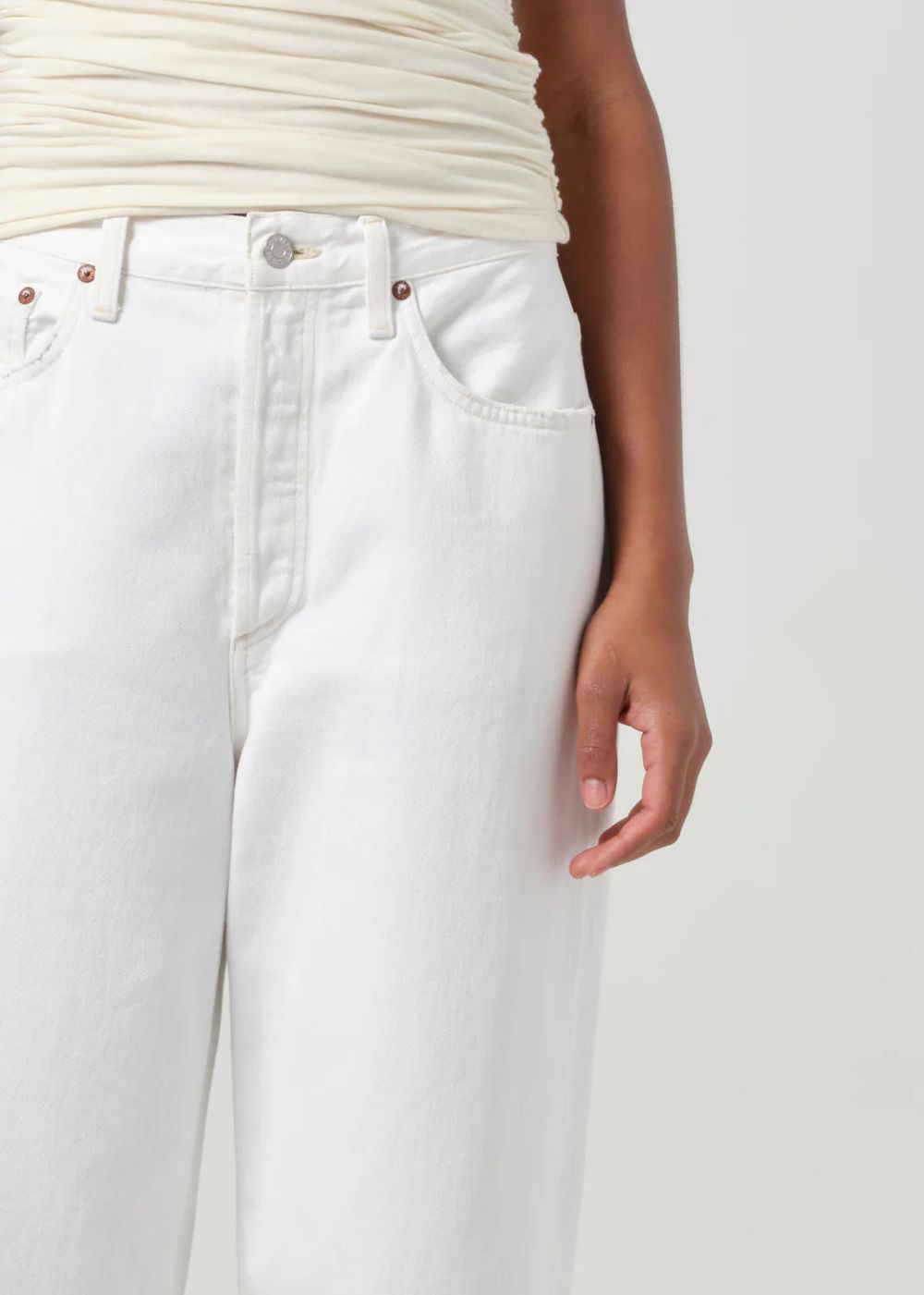 Аголде Хенсон Јеан у млечним у облику млека нуди опуштено уклапање са врећастом пропорцијама, у којој се налази средњи струк и суптилан, меки конус. Израђен од не-растег регенеративног памука, ови траперице долазе у оштром бијелом прању, пружајући чисту и свјежу естетику са еколошком издржљивошћу. Идеално за упаривање са повременим тинема или повишеним врховима, Хенсон је свестрани додатак вашој гардероби, удисавајући безвременско, минималистичко вибрацију.